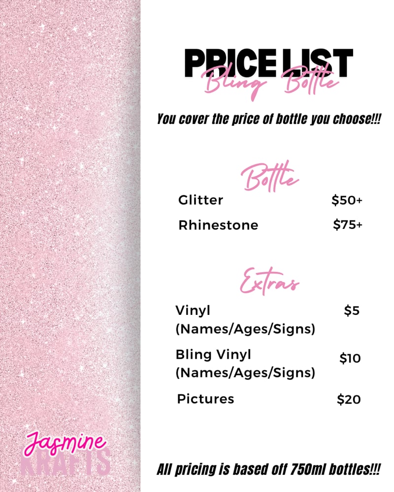 Elevate any bottle with our handcrafted Custom Bling Bottles—designed to shine and stand out! Each bottle is carefully covered with high-quality rhinestones, creating a dazzling, one-of-a-kind piece that’s perfect for gifting, décor, or personal collections.